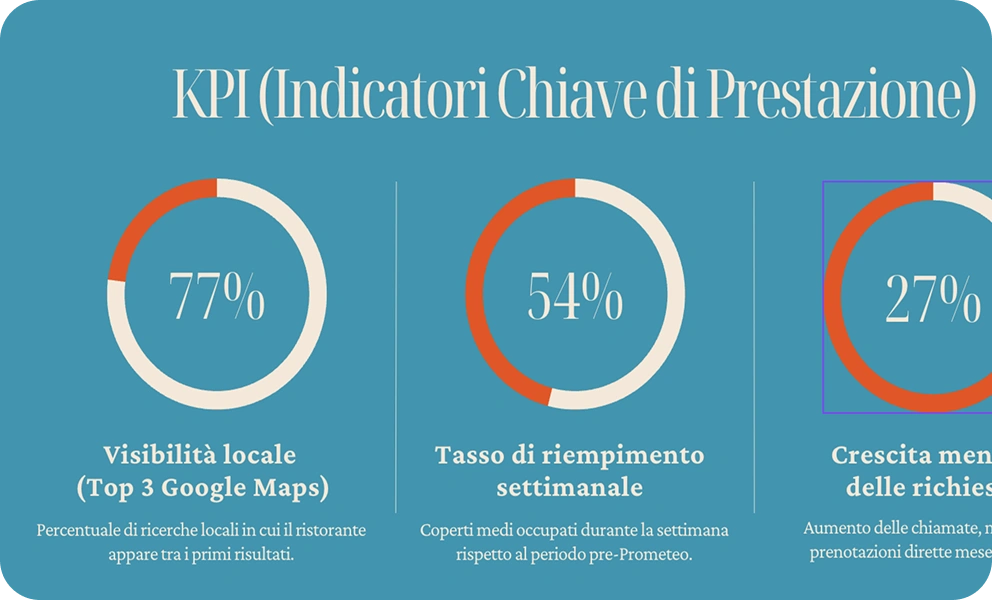 Sì. Abbiamo aiutato ristoranti, studi professionali, brand locali e aziende di servizi a crescere in modo costante. Adattiamo il metodo Prometeo al tuo settore, con strategie specifiche per il tuo mercato e la tua area geografica.